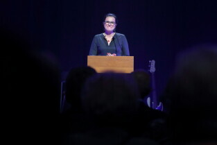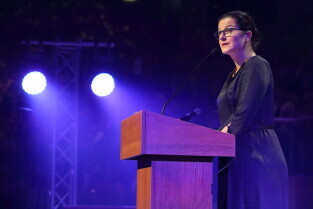 Gdańsk. Doroczne Obywatelskie Spotkanie Gdańszczan. Nz. Prezydent Gdańska Aleksandra Dulkiewicz.