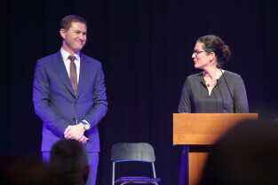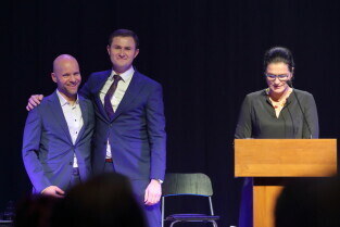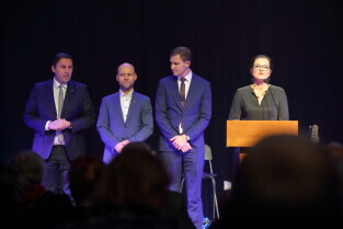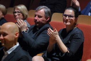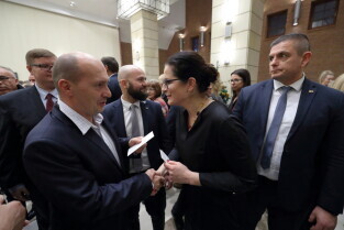Gdańsk. Doroczne Obywatelskie Spotkanie Gdańszczan. Nz. Europosłanka Magdalena Adamowicz i Wiceprezydenci Gdańska: Piotr Grzelak i Piotr Borawski.