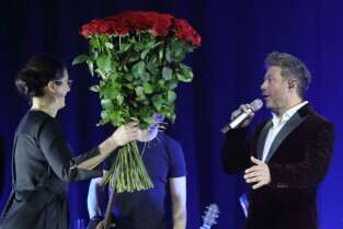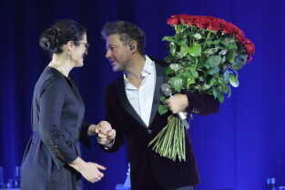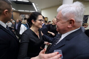 Gdańsk. Doroczne Obywatelskie Spotkanie Gdańszczan. Nz. Prezydent Gdańska Aleksandra Dulkiewicz i Andrzej Piaseczny.