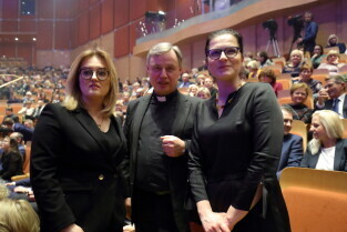 Gdańsk. Doroczne Obywatelskie Spotkanie Gdańszczan. Nz. Europosłanka Magdalena Adamowicz, Ks. Ireneusz Bradtke i Prezydent Gdańska Aleksandra Dulkiewicz.