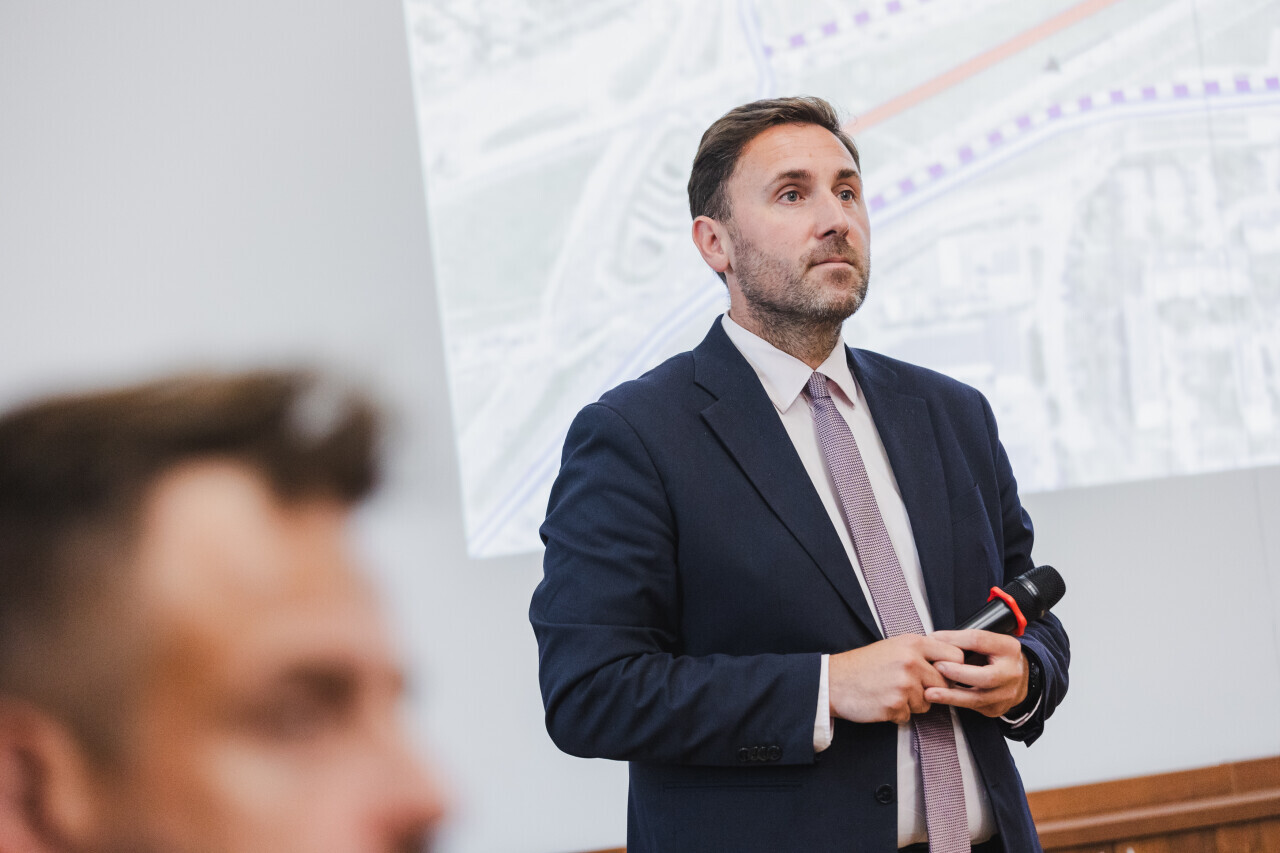 Gdańsk, ul. Nowe Ogrody. Drugi etap ekostrady. Spotkanie informacyjne. W spotkaniu brali udział, wiceprezydent Piotr Borawski, urzędnicy, radni oraz mieszkańcy