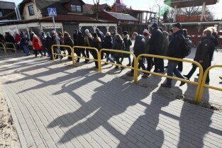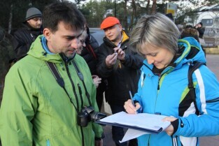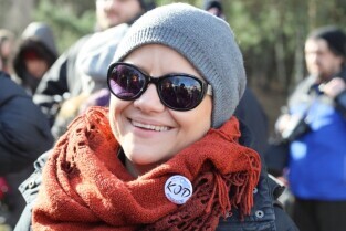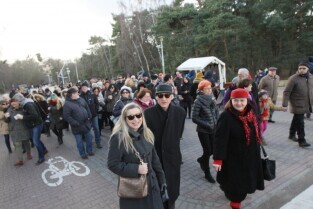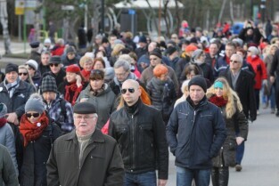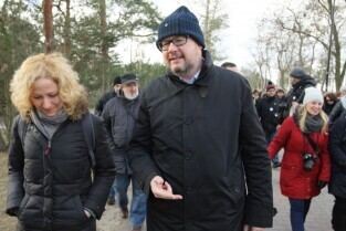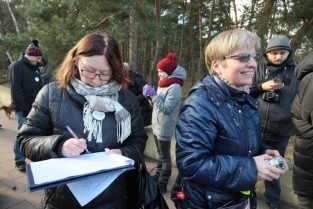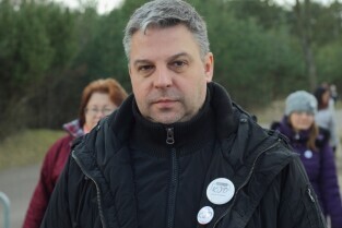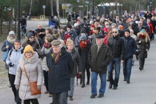 Sympatycy KOD-u przeszli z Brzeźna do Nowego Portu, przy okazji słuchając opowieści przewodnika o mijanych obiektach.
