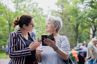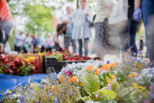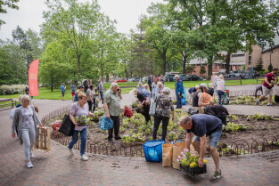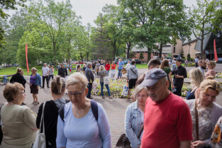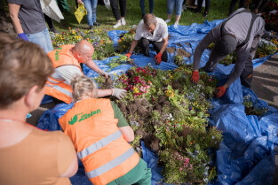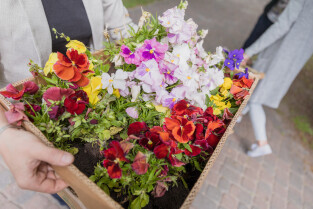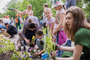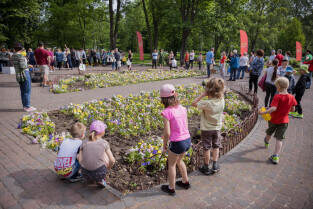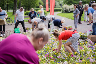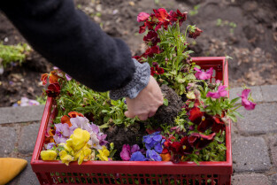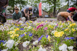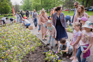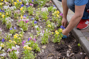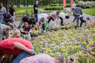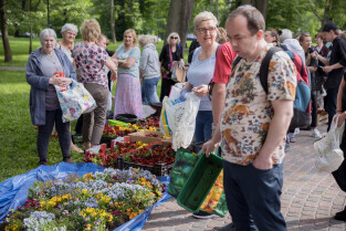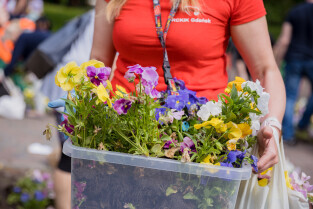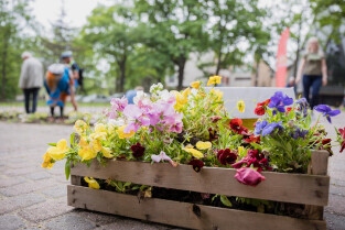 Gdańsk, Parku Zielonym przy ulicy Marii Skłodowskiej-Curie. Drugie życie bratków. Rozdano bezpłatne sadzonki. Mieszkańców odwiedziła Prezydent Gdańska Aleksandra Dulkiewicz