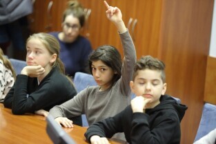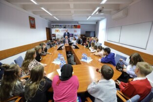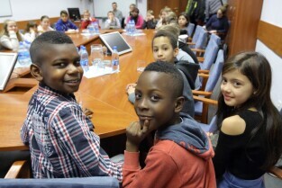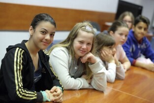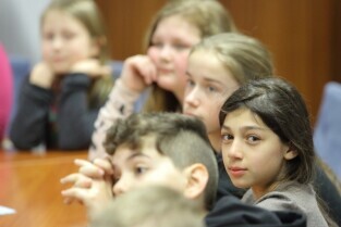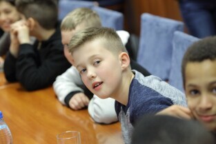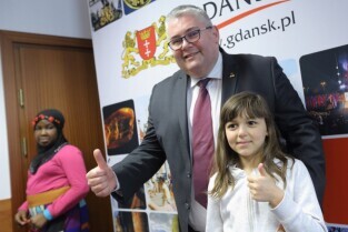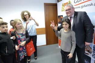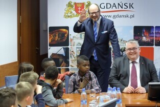 Gdańsk. Dzieci z Hamburga, które Szkoła Podstawowa nr 15 gości w ramach wymiany polsko-niemieckiej spotkały się z Prezydentem Gdańska Pawłem Adamowiczem i Wiceprezydentem Gdańska Piotrem Kowalczukiem.
