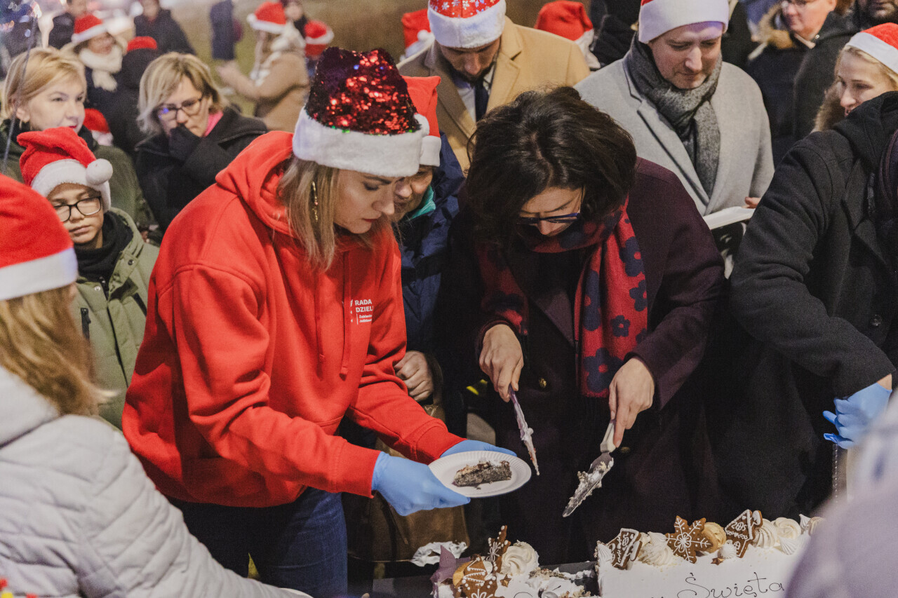 Gdańsk. Dzielnicowa choinka na Żabiance. Obecna była Aleksandra Dulkiewicz prezydent Gdańska oraz radni miejscy, Łukasz Bejm, Jan Perucki i Karol Ważny