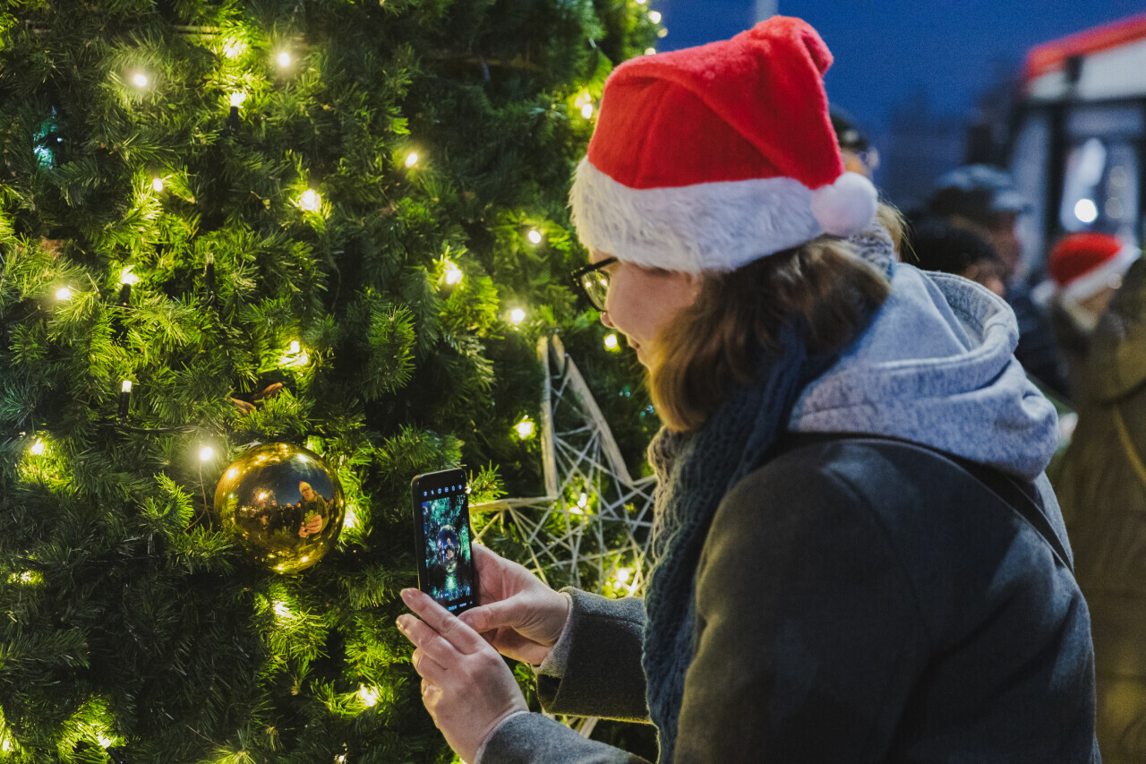 Gdańsk. Dzielnicowa choinka na Żabiance. Obecna była Aleksandra Dulkiewicz prezydent Gdańska oraz radni miejscy, Łukasz Bejm, Jan Perucki i Karol Ważny