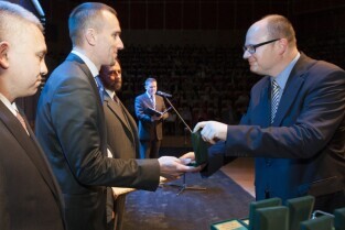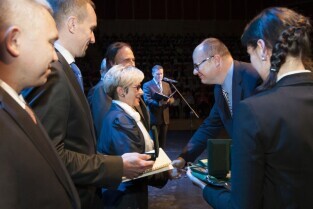 Gdańsk, Filharmonia Bałtycka. Obchody Dnia Budowlanych, z okazji którego Prezydent Gdańska Paweł Adamowicz wręczył medale osobom zasłużonym dla budownictwa w Gdańsku.