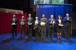 Gdańsk, Filharmonia Bałtycka. Obchody Dnia Budowlanych, z okazji którego Prezydent Gdańska Paweł Adamowicz (nz) wręczył medale osobom zasłużonym dla budownictwa w Gdańsku.