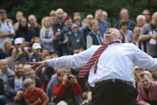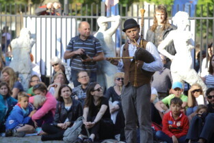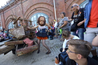 Gdańsk. Dzień Drugi XXI Międzynarodowego Festiwalu Teatrów Plenerowych i Ulicznych FETA. Nz. Spektakl The Primitives "Three of a Kind".
