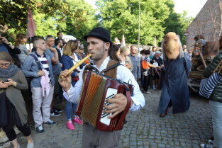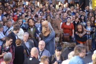Gdańsk. Dzień Drugi XXI Międzynarodowego Festiwalu Teatrów Plenerowych i Ulicznych FETA. Nz. Spektakl Whalley Range All Stars "Compost Mentis".