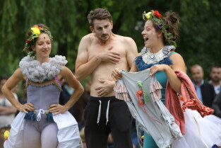 Gdańsk. Dzień Drugi XXI Międzynarodowego Festiwalu Teatrów Plenerowych i Ulicznych FETA. Nz. Spektakl The Primitives "Three of a Kind".