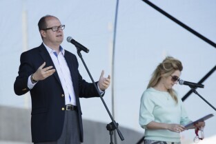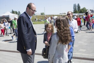 Gdańsk Letnica. Dzień Dziecka na PGE Arenie połączony z dniem otwartym stadionu. Nz. Prezydent Gdańska Paweł Adamowicz