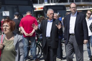 Gdańsk Letnica. Dzień Dziecka na PGE Arenie połączony z dniem otwartym stadionu. Nz. Prezydent Gdańska Paweł Adamowicz i Prezes ZKM Gdańsk Jerzy Zgliczyński (po lewej)