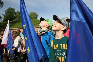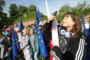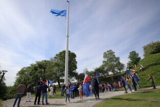 Dzień Europy - podniesienie flagi Unii Europejskiej na Górze Gradowej