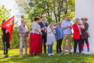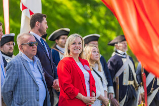 Gdańsk, Dzień Flagi Rzeczpospolitej Polskiej. Podniesienie flagi państwowej RP na Górze Gradowej. Nz. wiceprezydent Piotr Grzelak