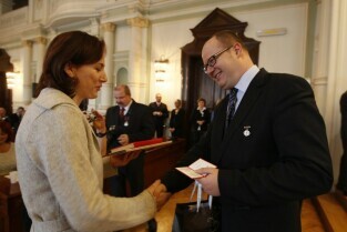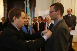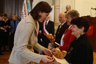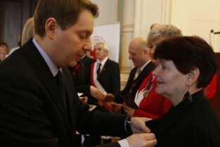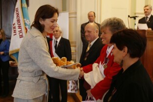 Z okazji Dnia Honorowego Krwiodawstwa przyznano odznaczenia zasłużonym krwiodawcom. Gdańsk Nowy Ratusz
