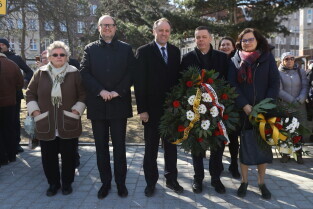 Gdańsk. Uroczyste obchody 780-tej rocznicy pojawienia się pisemnej wzmianki o Kaszubach, Dzień Kaszubski w Gdańsku. Nz. Radna Teresa Wasilewska, Prezydent Gdańska Paweł Adamowicz, Marszałek Województwa Pomorskiego Mieczysław Struk, Jan Kleinszmidt-Przewodniczący Sejmiku Województwa Pomorskiego i Posłanka Ewa Lider.