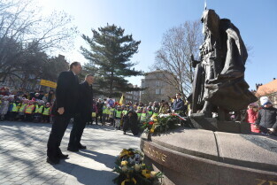 Gdańsk. Uroczyste obchody 780-tej rocznicy pojawienia się pisemnej wzmianki o Kaszubach, Dzień Kaszubski w Gdańsku. Nz. Marszałek Województwa Pomorskiego Mieczysław Struk i Jan Kleinszmidt-Przewodniczący Sejmiku Województwa Pomorskiego.