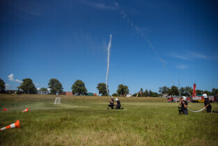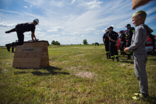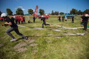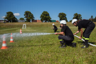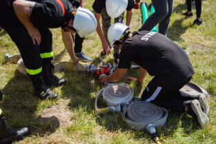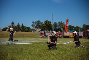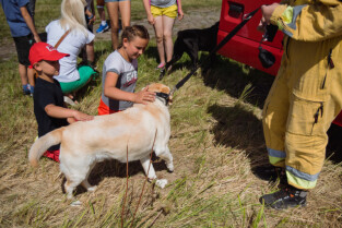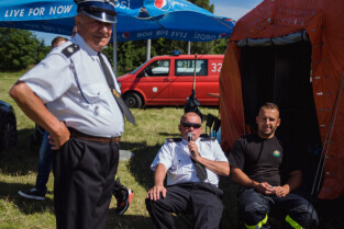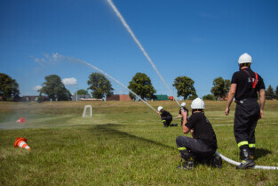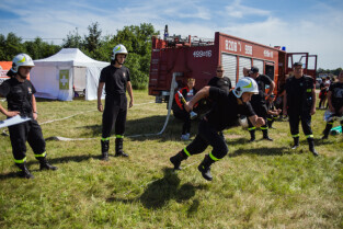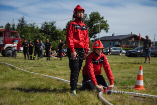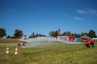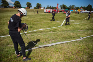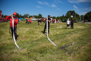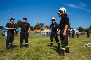 Gdańsk. Dzień Otwarty Wyspy Sobieszewskiej. FESTYN ŚWIBNIEŃSKIE LATO i IV Piknik - Wyspa Przyrodników. Nz. od lewej, Maciej Jończy, Dawid Godlewski i Kacper Krajewski z OSP Świbno