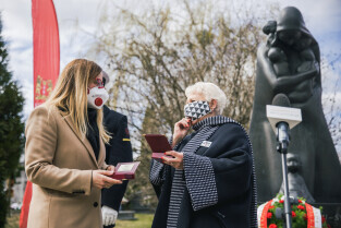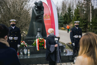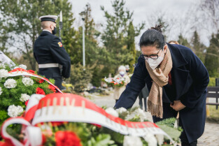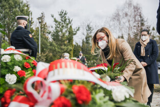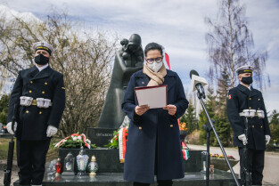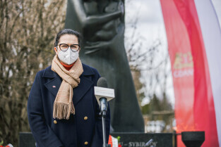 Gdańsk, Cmentarz Łostowicki. Dzień Pamięci Ofiar Zbrodni Katyńskiej oraz 81. rocznicę II masowej zsyłki Polaków na Sybir. Nz. Prezydent Gdańska Aleksandra Dulkiewicz