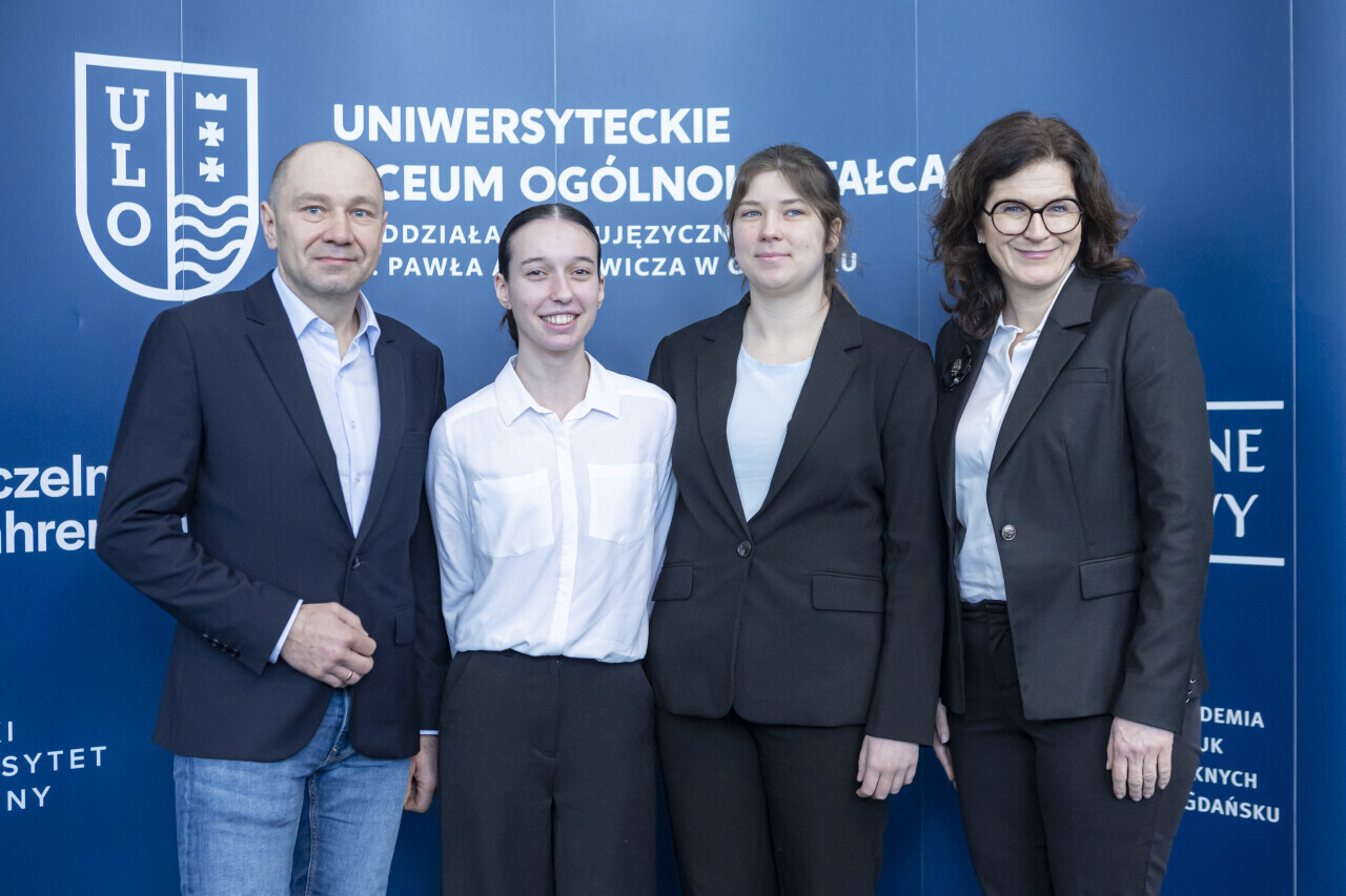 Gdańsk. Europosłanka Magdalena Adamowicz, poseł Piotr Adamowicz, Prezydent Aleksandra Dulkiewicz oraz radny Andrzej Kowalczys wzięli udział w uroczystych obchodach Dnia Patrona w Uniwersyteckim Liceum Ogólnokształcącym im.Pawła Adamowicza. Nz. Julia Andruszkiewicz - laureatka nagrody Ambasador Wartości