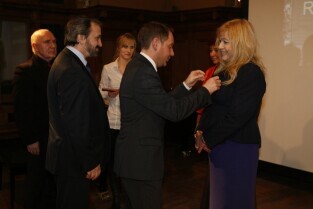 Gdańskie obchody Dnia Pracownika Służb Zatrudnienia. Gdańsk, Ratusz Staromiejski. Nz. W-ce Wojewoda Pomorski Michał Owczarczak wręcza Medale Prezydenta RP