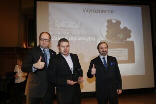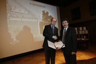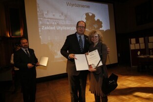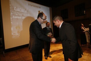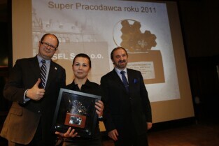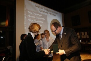 Gdańskie obchody Dnia Pracownika Służb Zatrudnienia. Gdańsk, Ratusz Staromiejski. Nz. Prezydent Gdańska Paweł Adamowicz wręcza nagrodę główną dla firmy "Assel" Sp. z o.o. w plebiscycie "Super Pracodawca 2011 r.", organizowanego przez Powiatowy Urząd Pracy w Gdańsku