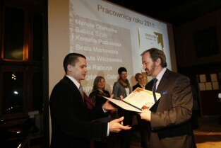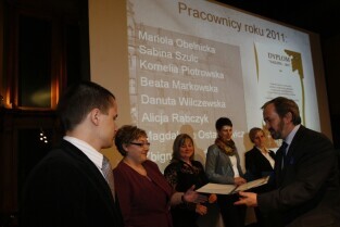 Gdańskie obchody Dnia Pracownika Służb Zatrudnienia. Gdańsk, Ratusz Staromiejski. Nz. Dyrektor Powiatowego Urzędu Pracy w Gdańsku Roland Budnik wręcza dyplomy dla "Pracowników Roku 2011"