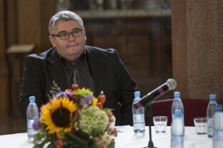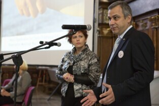 Ogólnopolski Dzień Przedszkolaka w Gdańsku. Debata pt. "Gdańsk, Miasto niewidzialne”. Gdańsk, Dwór Artusa. Nz. Dyrektor Wydziału Rozwoju Społecznego UMG Piotr Kowalczuk