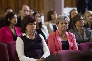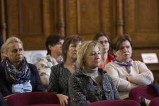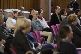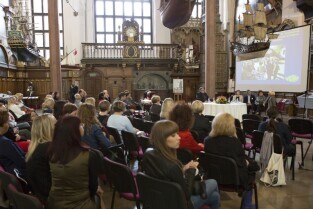 Ogólnopolski Dzień Przedszkolaka w Gdańsku. Debata pt. "Gdańsk, Miasto niewidzialne”. Gdańsk, Dwór Artusa. Nz. Prezes OMEP Polska Anna Wróbel