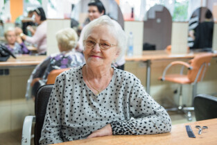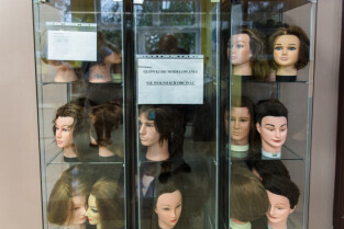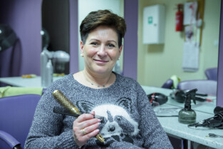 Gdańsk, ul. Dąbrowszczaków. Dzień Seniora w Zespole Szkół Kreowania Wizerunku. Nz. Małgorzata Rumińska, mistrz fryzjerstwa i nauczycielka, koordynator “Dnia Seniora” w szkole