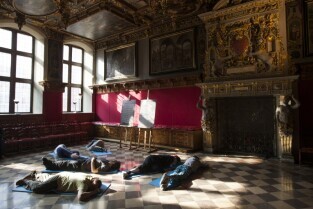 Gdańsk, Ratusz Głównego Miasta. Zgodnie z zapisem w Kalendarzu Świąt Nietypowych dniu 26 lutego przypada "Dzień Spania w Miejscach Publicznych". Z tej okazji Muzeum Historyczne Miasta Gdańska zorganizowało akcję "Utnijmy sobie drzemkę w Ratuszu!”