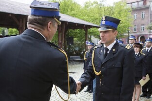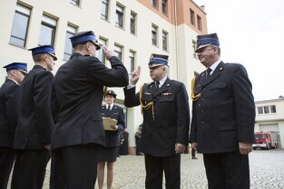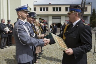 Uroczystość "Dnia Strażaka 2015". Gdańsk Wrzeszcz, Jednostka Ratowniczo-Gaśnicza nr 1 przy ul. Sosnowej. Nz. po lewej Komendant Miejski Straży Pożarnej w Gdańsku Wojciech Prusak