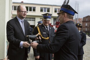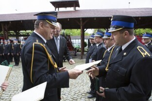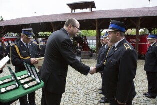 Uroczystość "Dnia Strażaka 2015". Gdańsk Wrzeszcz, Jednostka Ratowniczo-Gaśnicza nr 1 przy ul. Sosnowej. Nz. Prezydent Gdańska Paweł Adamowicz