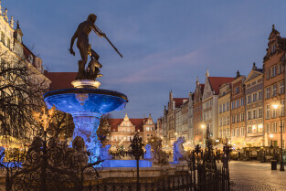 Gdańsk, Fontanna Neptuna. Dzień Świadomości Autyzmu