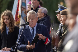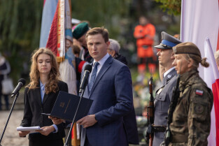 Gdańsk, Cmentarz Łostowicki, u stóp pomnika Golgoty Wschodu. Dzień Sybiraka w 83. Rocznicę agresji sowieckiej na Polskę. Nz. Wiceprezydent Piotr Grzelak