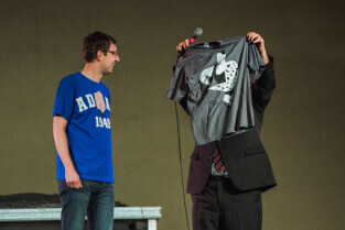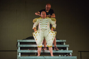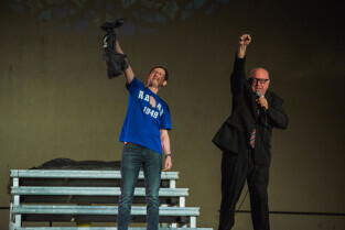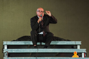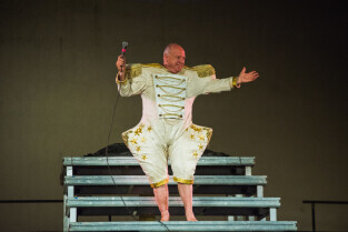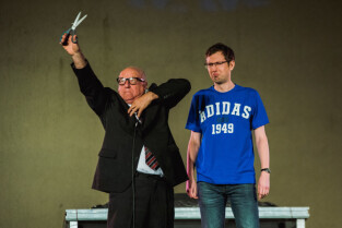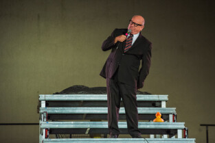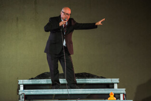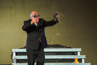 Gdańsk. Dzień Trzeci XXI Międzynarodowego Festiwalu Teatrów Plenerowych i Ulicznych FETA. Leo Bassi - UTOPIA