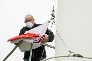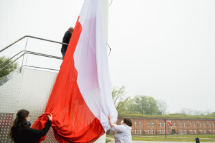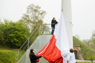 Gdańsk. Dzień flagi narodowej - wciągnięcie flagi na maszt na Górze Gradowej