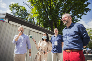 Gdańsk. Dzień otwarty Domu Zdrojowego w Brzeźnie. Nz. (od prawej) Paweł Golak, dyrektor Hevelianum i Alan Aleksandrowicz, zastępca prezydent Gdańska ds. inwestycji