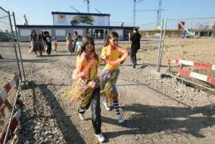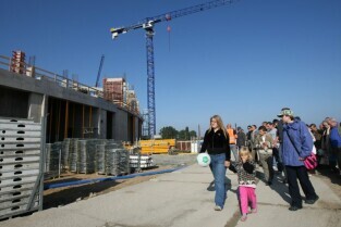 Gdańsk Letnica. Dzień otwarty na budowie stadionu piłkarskiego na UEFA EURO 2012. Nz. platforma widokowa przy ul. Żaglowej, z której można oglądać postęp prac przy budowie stadionu
