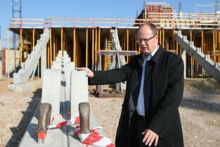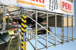 Gdańsk Letnica. Dzień otwarty na budowie stadionu piłkarskiego na UEFA EURO 2012. Nz. Prezydent Gdańska Paweł Adamowicz wchodzi na platformę widokową przy ul. Żaglowej, z której można oglądać postęp prac przy budowie stadionu