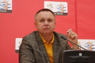 Centrum Medialne na Targu Węglowym. Konferencja prasowa podsumowującą pierwszy mecz UEFA EURO 2012 rozegrany na gdańskim stadionie. Nz. nowy trener Lechii Gdańsk Bogusław Kaczmarek.