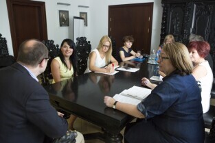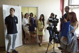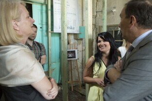 Pani Ilona Kurp, zwyciężczyni aukcji WOŚP, spędza dzień Prezydentem Gdańska Pawłem Adamowiczem. Konferencja prasowa poświęcona renowacji kamienicy na ul. Rycerskiej 10