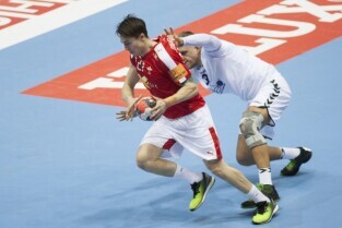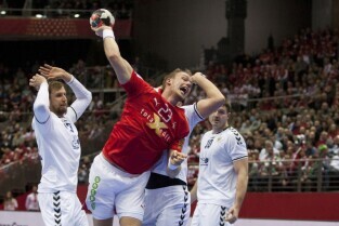 Ergo Arena. EHF Mistrzostwa Europy w piłce ręcznej mężczyzn Polska 2016. Mecz Dania - Rosja. Nz. Lasse Svan Hansen