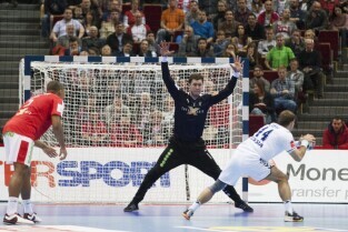 Ergo Arena. EHF Mistrzostwa Europy w piłce ręcznej mężczyzn Polska 2016. Mecz Dania - Rosja. Nz. Niklas Landin Jacobsen