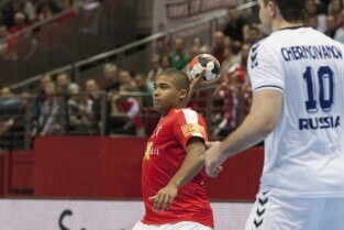 Ergo Arena. EHF Mistrzostwa Europy w piłce ręcznej mężczyzn Polska 2016. Mecz Dania - Rosja. Nz. Igor Soroka