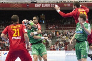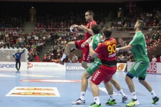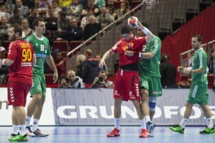 Ergo Arena. EHF Mistrzostwa Europy w piłce ręcznej mężczyzn Polska 2016. Mecz Węgry - Czarnogóra. Nz. Laszlo Nagy