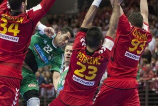 Ergo Arena. EHF Mistrzostwa Europy w piłce ręcznej mężczyzn Polska 2016. Mecz Węgry - Czarnogóra. Nz. Bogdan Petricevic