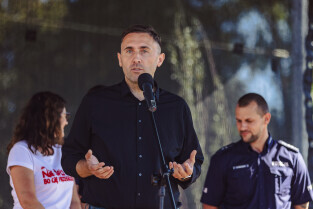 Gdańsk, Zaspa. Edukacyjny piknik rodzinny w ramach Europejskiego Tygodnia Mobilności. Nz. Piotr Borawski, zastępca Prezydenta ds. przedsiębiorczości i ochrony klimatu.