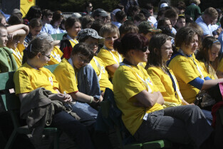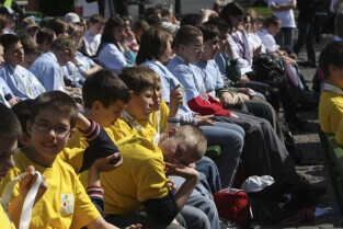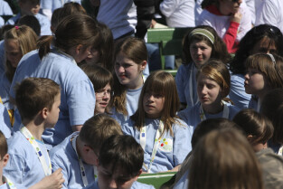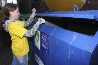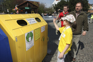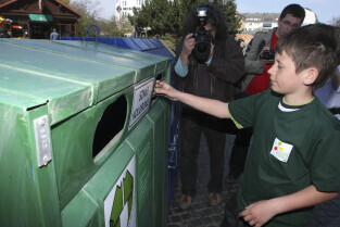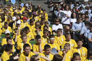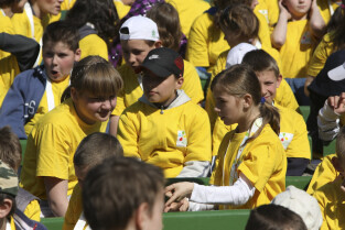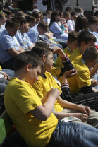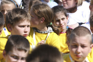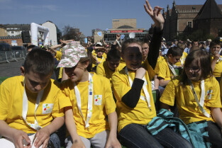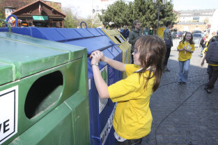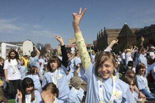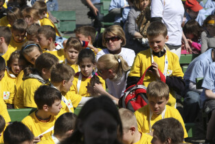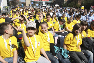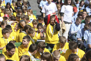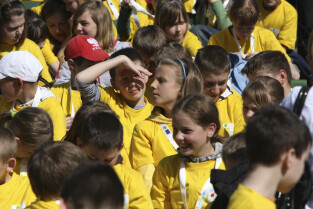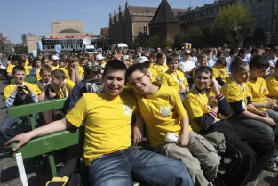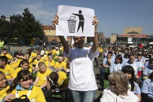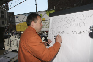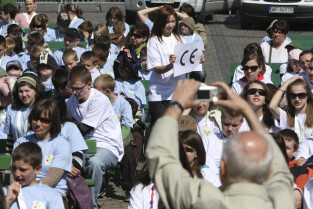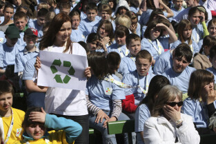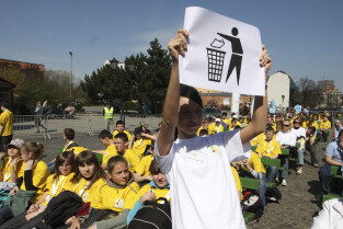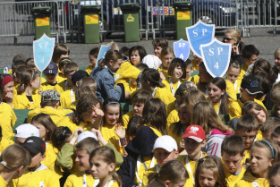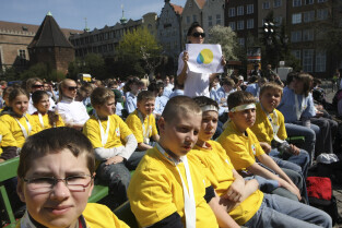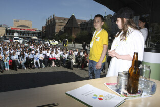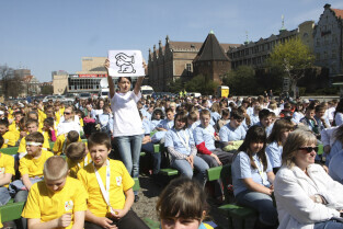 Ekologiczna lekcja dla gdańskich szkół, w której wzięła udział rekordowa na skalę światową liczba 400 uczniów. Gdańsk, Targ Węglowy